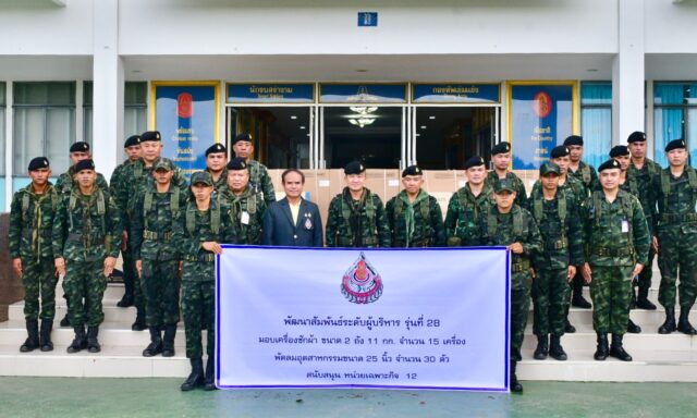 เมื่อวันที่ 4 สิงหาคม 2568 ชมรมพัฒนาสัมพันธ์ระดับผู้บริหาร รุ่นที่ 28 ได้จัดกิจกรรมแสดงความห่วงใยและสนับสนุนการปฏิบัติภารกิจของเจ้าหน้าที่ในพื้นที่ชายแดน โดยได้มอบเครื่องซักผ้าขนาด 2 ถัง จำนวน 15 เครื่อง และพัดลมอุตสาหกรรมขนาด 25 นิ้ว จำนวน 30 ตัว ให้แก่หน่วยเฉพาะกิจ 12
