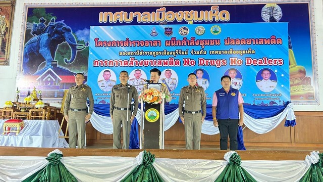 วันที่ 5 ส.ค.68 ผู้สื่อข่าวรายงานว่า ที่โดมเทศบาลเมืองชุมเห็ด อ.เมือง จ.บุรีรัมย์ พล.ต.ต.ณรงค์ศักดิ์ พรหมทา ผู้บังคับการตำรวจภูธรจังหวัดบุรีรัมย์ และ ร.ต.ต.สมชาย ภิรมย์ชาติ นายกเทศบาลเมืองชุมเห็ด ได้ร่วมเป็นประธานเปิดโครงการ””ตำรวจอาสา ผนึกกำลัง ชุมชนปลอดยาเสพติด”มีประชาชนที่สมัครมาเข้าร่วมอบรมรุ่นแรกร่วม 200 คน