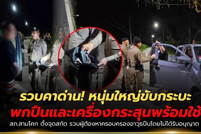ปทุมธานี รวบคาด่าน หนุ่มใหญ่ขับกระบะท่าทีพิรุธ ค้นเจอปืนพร้อมกระสุน อ้างยืมเพื่อนหญิงมา