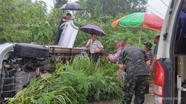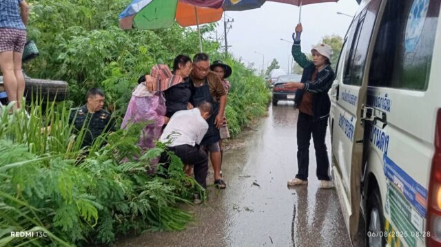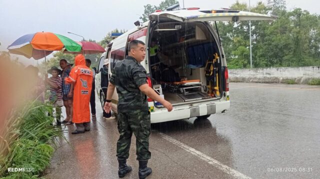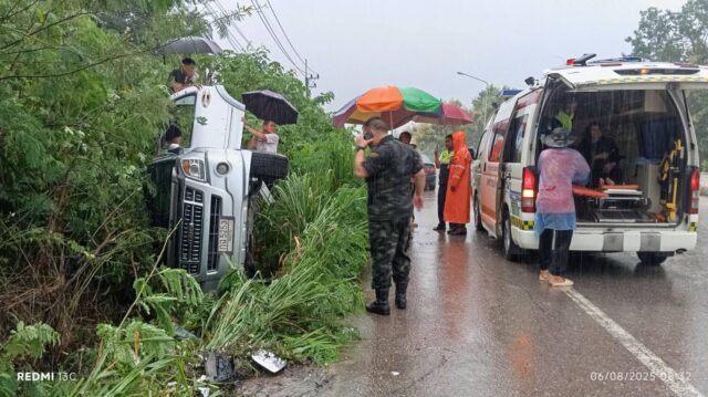 วันที่ 6 สิงหาคม 2568 เวลา 08.20 น.บริเวณถนนพหลโยธิน ลำปาง–งาว บ้านท่าสี ม.3 ต.บ้านดง อ.แม่เมาะ จ.ลำปาง ขณะเดินทางมาปฏิบัติงาน จ่าสิบโท ปิยะณัฐ นามขัด สังกัดกองร้อยฝึกรบพิเศษที่ 3 ค่ายฝึกการรบพิเศษประตูผาได้พบรถยนต์เสียหลักไถลตกข้างทางจากสภาพถนนลื่นเพราะฝนตก โดยมีผู้โดยสาร 5 คน ภูมิลำเนา จ.เชียงราย กำลังเดินทางไปร่วมงานศพที่ อ.แม่เมาะ