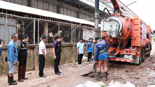 ปทุมธานี อบจ.ปทุม-น่าน บูรณาการร่วมกับใช้รถดูดโคลนทำความสะอาดท่อระบายน้ำ พื้นที่อุทกภัยจังหวัดน่าน