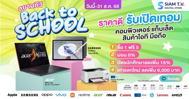 และเพื่อตอบโจทย์ทุกความต้องการ สยามทีวีได้จัดแคมเปญย่อยที่น่าสนใจมากมาย สยามทีวีมหกรรมเครื่องซัก-อบผ้า: “ซักอบครบ ลดสุดคุ้ม!” (1–31 ส.ค. 68): มัดรวมเครื่องซักผ้าและเครื่องอบผ้าทุกแบรนด์ดัง ลดสูงสุด 70%*,สยามทีวี Back to School (วันนี้ – 31 ส.ค. 68): ต้อนรับเปิดเทอมใหม่กับโปรโมชั่นลดเต็มแม็กซ์สำหรับโน้ตบุ๊ก แท็บแล็ต ปริ้นเตอร์ และสินค้าไอที ซื้อ 1 แถม 5* พร้อมสิทธิพิเศษสำหรับนักเรียน/นักศึกษา รับส่วนลดเพิ่ม 15%* และสินค้าไฮไลต์มากมาย และ สยามทีวี Hisense Shock Sale (1–31 ส.ค. 68):