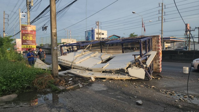 ที่เกิดเหตุอยู่ช่องการจราจรซ้ายสุด บนถนนซ่อมสร้าง ตำบลบางพูน อำเภอเมืองจังหวัดปทุมธานี พบรถบรรทุกแผ่นปูน หมายเลขทะเบียน 70- 2616 กำแพงเพชร พลิกคว่ำ ตะแคงอยู่ ใกล้เคียงกับปั๊มบางจาก ทำให้เกิดการจราจรติดขัดในช่วงเวลาเร่งด่วน เป็นอย่างมาก