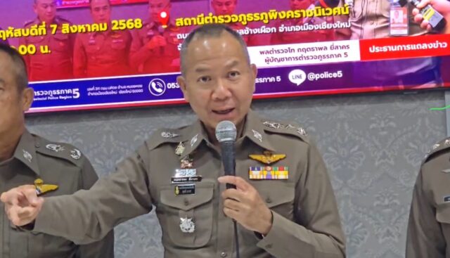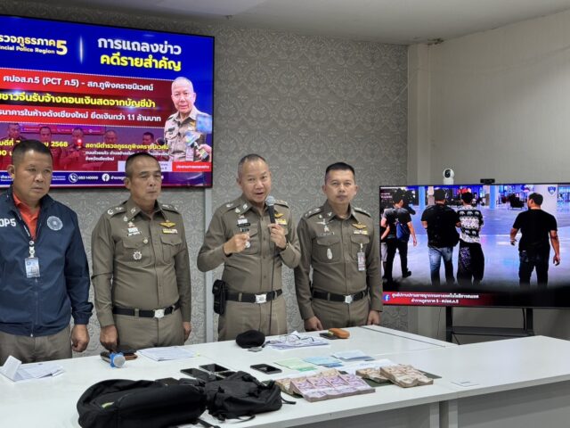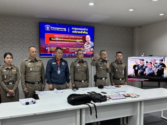พล.ต.ท.กฤตธาพล ยี่สาคร ผบช.ภ.5 เป็นประธานการแถลงข่าวผลการปฏิบัติคดีอาชญากรรมรายสำคัญในพื้นที่ ภ.5 กรณีเมื่อวันที่ 5 สิงหาคม 2568 ศปอส.ภ.5 (PCT ภ.5) – สภ.ภูพิงคราชนิเวศน์ จ.เชียงใหม่ ได้สืบสวนหาข่าวว่ามีชาวจีน ได้ทำธุรกรรมถอนเงินสดต้องสงสัย จนสืบทราบว่ากลุ่มคนจีนรับจ้างถอนเงินดังกล่าว มีความเคลื่อนไหว ในพื้นที่ จ.เชียงใหม่ จึงได้รวบรวมข้อมูลและลงพื้นที่ในการตรวจสอบ และจับกุมผู้ต้องหาทั้ง 3 ราย ข้อหา ร่วมกันฉ้อโกงประชาชนโดยแสดงตนเป็นบุคคลอื่นฯและ พรก. มาตรการป้องกันและปราบปรามฯต่อมาได้สืบสวนขยายผลผู้ร่วมขบวนการเพิ่มอีก 1 คน รวมออกหมายจับจำนวน 4 ราย จับกุมได้จำนวน 3 คน