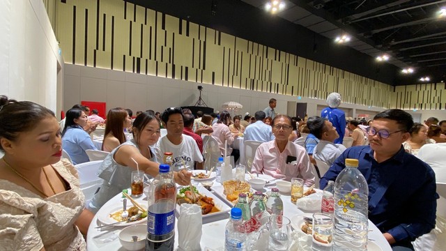 และต่อมา 10.09 น. มีพิธีรด น้ำสังข์ เวลา 11.09 น. ฉลองมงคลสมรส เชิญแขก ผู้มีเกียรติร่วมรับประทานอาหาร โต๊ะจีน ณ ฮอลล์ชั้น 2 เซ็นทรัลจันทบุรี ซึ่งในงานนี้เป็นงานที่จัดขึ้นในจังหวัดจันทบุรี และจัดในห้างดัง ภายในเมืองจันทบุรี ซึ่งเป็นงานมงคลสมรส ที่ใหญ่มากๆ อีกงานหนึ่งของจังหวัดจันทบุรีเลยทีเดียว ทางเจ้าภาพได้เรียนเชิญแขกเหรื่อ มาร่วมงานเป็นจำนวนมาก พร้อมเพื่อนทางเจ้าบ่าวและเจ้าสาว จนอัดแน่นจนเต็ม ฮอลล์ชั้น 2