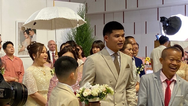 พ.ต.อ.พลภัทร ผกก.สภ.แก่งหางแมว พ.ต.อ.ณกฤช ใจนักนักเรียน ผกก.สภ. ทุ่งเบญจา อธิบดีพยุง เณรพราย ดร.เกษม นวนใย กำนันประยุทธ์ พานทอง สจ. คัมภีร์ ชื่นบาน สจ. สมยศ ศรีทองคำ สจ. อัจฉริยะ กิจอุดม เจ้ชบา หรือชบา รีสอร์ท เป็นต้นและแขกเหรื่อ ที่มาร่วมงาน ที่ไม่ได้เอ่ยนาม อีกมากมายที่มาร่วมแสดงความยินดี กับงานสมรสในครั้งนี้ จ.ส.ต.อภิชัย ดวงแก้ว ซึ่งเป็นบุตรชาย ของกำนัน สมชาย(ฟัก)ดวงแก้ว และ นางวาสนา(น้ำ) ดวงแก้ว สมรสกับ นางสาวศศิปรียา ชนะสิทธิ์ ซึ่งเป็นบุตรสาวของ นายการุณ(กวาง) แซ่ตั๋น และนางสาวณิชกมล(นา) ชนะสิทธิ์ ในพิธีแห่ขันหมากเวลา 09.09 น.