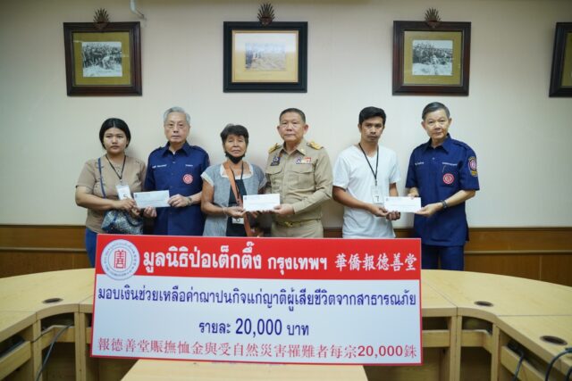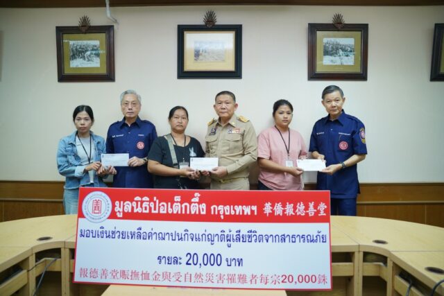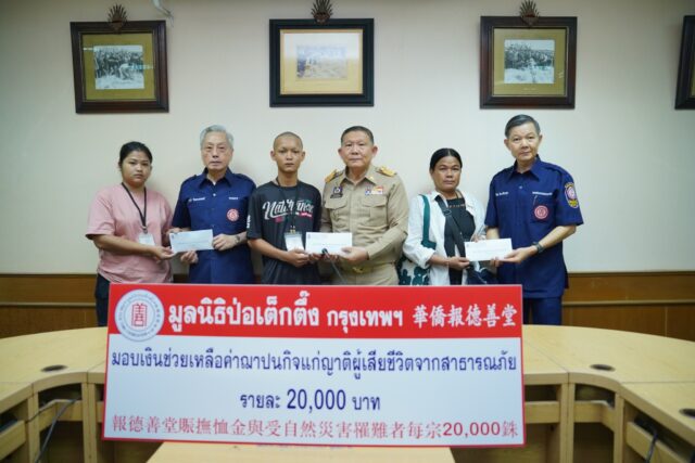 มูลนิธิป่อเต็กตึ๊ง ซับน้ำตา บรรเทาทุกข์ – เยียวยาผู้บาดเจ็บ และมอบเงินช่วยเหลือค่าฌาปนกิจแก่ญาติผู้เสียชีวิตจากเหตุโรงงานพลุระเบิด ตำบลบ้านโพธิ์ อำเภอเมือง จังหวัดสุพรรณบุรี