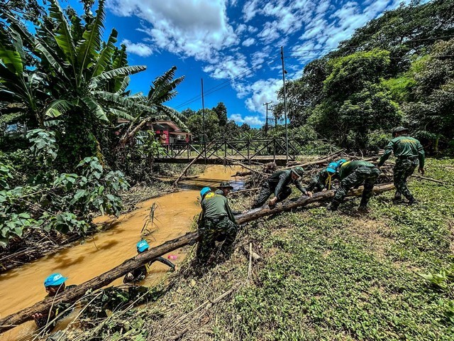 ทางหน่วยจึงจัดกำลังพลเข้าช่วยเหลือและกำจัดเศษกิ่งไม้และเศษสวะที่ขวางทางน้ำ และเร่งฟื้นฟูบ้านเรือนของประชาชนที่ได้รับผลกระทบจากเหตุอุทกภัยในครั้งนี้ และหน่วยยังได้ติดตามสถานการณ์น้ำอย่างใกล้ชิด และประสานผู้นำหมู่บ้าน, ผู้นำชุมชน จัดเจ้าหน้าที่เฝ้าระวัง แจ้งให้ชาวบ้านเตรียมพร้อมรับมือต่อสถานการณ์น้ำที่เกิดขึ้น และทางหน่วยจะประสานกับส่วนราชการอื่นๆ ในการช่วยเหลือประชาชนที่ประสบภัยต่อไป