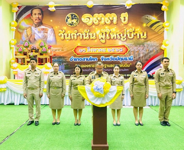 จึงกำหนดให้ในวันที่ 10 สิงหาคมของทุกปีเป็นวันกำนันผู้ใหญ่บ้าน จากนั้นท่านนายอำเภอ สามโคกได้อ่านสาร ในวันกำนันผู้ใหญ่บ้านให้กับ กำนันผู้ใหญ่บ้านหรือรับทราบเสร็จแล้วท่านนายอำเภอได้ประดับเครื่องหมายและมอบ หนังสือสำคัญแสดงหลักฐานการเป็นผู้ใหญ่บ้านสารวัตรกำนันแพทย์ประจำตำบลและผู้ช่วยผู้ใหญ่บ้าน มอบประกาศเกียรติคุณกำนันผู้ใหญ่บ้าน ที่เสนอชื่อเข้ารับรางวัลประจำปี 2568 ประดับเข็มและมอบประกาศณียบัตรผู้ผ่านการฝึกอบรมตามหลักสูตรกำนันผู้ใหญ่บ้านประจำปีงบประมาณ 2568