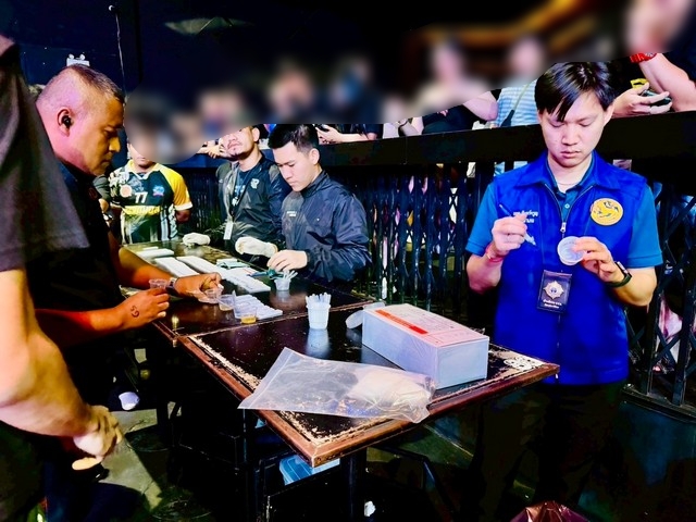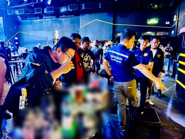 เมื่อไปถึงพบว่า สถานบันเทิงดังกล่าว ยังเปิดให้บริการอยู่มีนักท่องเที่ยวนับร้อยรายกำลังนั่งดื่มกินอยู่ภายใน เจ้าหน้าที่จึงสั่งให้ปิดเพลงและเปิดไฟ ก่อนทำการคัดแยกชายหญิงเพื่อตรวจสอบบัตรประชาชนและตรวจปัสสาวะหาสารเสพติดในร่างกาย จำนวน 129 ราย แบ่งเป็นชาย 62 ราย และหญิง 67 ราย ผลปรากฏว่า ในจำนวนนี้ มีนักท่องเที่ยวชายปัสสาวะสีม่วง 1 ราย