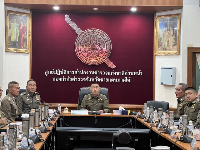 วันนี้ (13 สิงหาคม 2568) เวลา 13.30 น. พล.ต.ท.สำราญ นวลมา ผู้ช่วยผู้บัญชาการตำรวจแห่งชาติ (ผู้ช่วย ผบ.ตร.) ในฐานะผู้อำนวยการศูนย์ปฏิบัติการตำรวจจังหวัดชายแดนภาคใต้ (ศปก.ตร.สน.) เดินทางตรวจเยี่ยมและประชุมมอบนโยบายแก่ผู้บังคับบัญชาในพื้นที่ เพื่อเสริมสร้างความพร้อมด้านการปฏิบัติราชการ และการดูแลสวัสดิภาพกำลังพล โดยมี พล.ต.ท.ปิยะวัฒน์ เฉลิมศรี ผู้บัญชาการตำรวจภูธรภาค 9 (ผบช.ภ.9) , พล.ต.ต.กฤษฎา แก้วจันดี รอง ผบช.ภ.9 รรท.ผบก.ภ.จว.นราธิวาส , พล.ต.ต.วัลลพ จำนงค์อาษา รอง ผบช.ภ.9 , พล.ต.ต.ธเรศ แก้วละเอียด รอง ผบช.ภ.9 , พล.ต.ต.นพศิลป์ พูลสวัสดิ์ รองผู้บัญชาการตำรวจนครบาล , พล.ต.ต.ณฐกรญ์ กาญจนาภรณ์ ผบก.ภ.จว.ยะลา , พล.ต.ต.สันทัศน์ เชื้อพุฒตาล ผบก.ภ.จว.ปัตตานี พร้อมผู้แทนหน่วยงานที่เกี่ยวข้อง เข้าร่วมประชุม