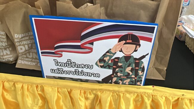 ดร.สุรินทร์ กล่าวว่า คุณนายหน่อย ณัฐวรรณ ฉายะบุตร เป็นผู้ที่มีความตั้งใจในการช่วยเหลือสังคม มาโดยตลอด กิจกรรมครั้งนี้ถือเป็นการแสดงน้ำใจและให้กำลังใจแก่ทหารผู้ปฏิบัติหน้าที่ปกป้องประเทศชาติ ซึ่งก่อนหน้านี้คุณนายหน่อยยังได้เคยบริจาคเงินจำนวน 1 ล้านบาท ให้กับ (กันจอมพลัง) โดยไม่ประสงค์ออกนามอีกด้วย