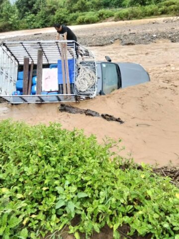 แม่ฮ่องสอน-อำเภอแม่สะเรียง แจ้งเตือนเฝ้าระวังน้ำป่าไหลหลาก หลัง รถยนต์วิ่งข้ามลำห้วยแม่แงะ ท่าแม่เจ ถูกน้ำป่าพัด เดชะบุญชาวบ้านช่วยกันทัน
