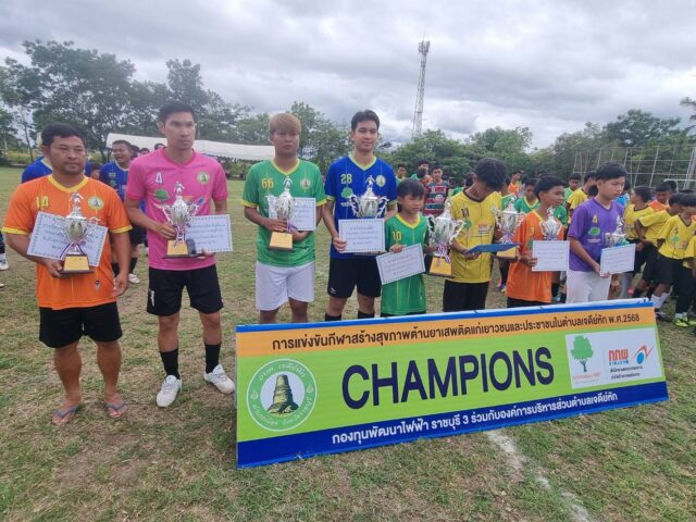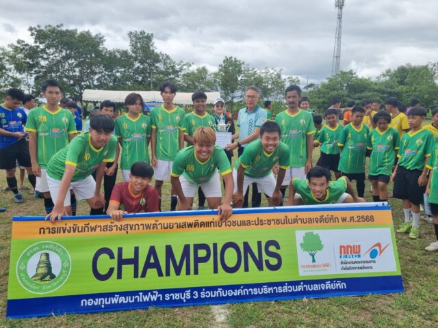 ปิดการแข่งขันกีฬาเยาวชนและประชาชนต้านยาเสพติด ต.เจดีย์หัก สร้างสุขภาพและความสามัคคีในชุมชนเพื่อเป้าหมายสำคัญเพื่อสร้างภูมิคุ้มกันทางสังคม