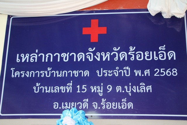 เวลา 10.30 น. ณ บ้านเลขที่ 15 หมู่ 9 ตำบลบุ่งเลิศ อำเภอเมยวดี จังหวัดร้อยเอ็ด นายชัชวาลย์ เบญจสิริวงศ์ ผู้ว่าราชการจังหวัดร้อยเอ็ด เป็นประธานในพิธีมอบบ้านตามโครงการสร้างบ้านและซ่อมแซมบ้านเพื่อผู้ยากไร้ ผู้ด้อยโอกาส ประจำปี 2568 เพื่อเฉลิมพระเกียรติสมเด็จพระนางเจ้าสิริกิติ์ พระบรมราชินีนาถ พระบรมราชชนนีพันปีหลวง เนื่องในโอกาสวันเฉลิมพระชนมพรรษา 12 สิงหาคม ให้แก่ นางสาวสุวิมล บุดดี โดยมีนางพัชรินทร์ ตุระซอง รองนายกเหล่ากาชาดจังหวัดร้อยเอ็ด พร้อมด้วยหัวน้าส่วนราชการ นายอำเภอเมยวดี และผู้นำท้องที่ท้องถิ่น เข้าร่วม