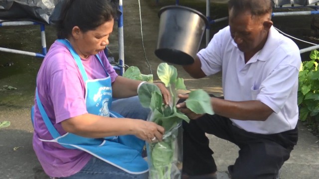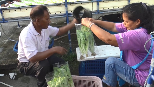 สงขลา-เกษตรกรสองสามีภรรยาเก็บผักกาดขาว และผักคะน้าเห็ดหอมไฮโดรโปนิกส์ “ผักไร้ดิน” ขายส่งให้กับแม่ค้าและลูกค้าตามที่มีออเดอร์ เข้ามาในราคาปรกติ กิโลกรัมละ 60 บาทเหมือนเดิม โดยบรรจุลงในถุงขายถุงละ 20 บาท เนื่องจากผักไฮโดรโปนิกส์จะเป็นที่ต้องการของตลาดมาก ปลอดสารพิษ สด สะอาด ประชาชนหันมากินผักไฮโดรโปนิกส์กันเป็นจำนวนมาก