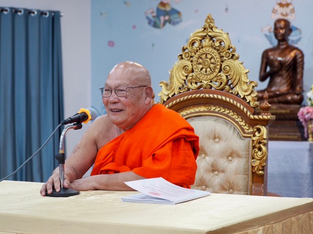วันนี้มาให้กำลังใจพระเถระชั้นผู้ใหญ่ และพระสงฆ์ที่มาร่วมประชุมพระสังฆาธิการสัญจร กันในครั้งนี้ จากที่ประเทศไทยประสบปัญหาต่างๆ มากมาย เช่น ปัญหาชายแดนไทย-กัมพูชา ก็ต้องให้กำลังและช่วยเหลือ และเมื่อมีปัญหาเรื่องที่เกี่ยวกับพระพุทธศาสนา ตนในฐานะคนไทยคนหนึ่ง มีความตั้งใจมาถวายกำลังใจให้พระสงฆ์ พร้อมมอบเงินสนับสนุน ทนุบำรุงพระพุทธศาสนาและ มอบเงินซื้อเครื่องตรวจข้อสอบให้มหาวิทยาลัยสงฆ์