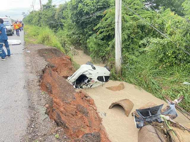 กาฬสินธุ์ สลด! นายก อบต.นาคู ขับเก๋งฝ่าสายฝน เสียหลักชนเสาไฟ รถจมน้ำดับ 3 ศพ เจ็บ 1