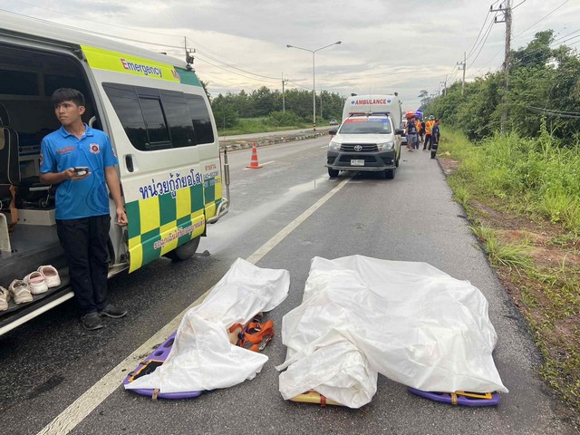 ภายในซากรถพบผู้เสียชีวิต 3 ราย และบาดเจ็บ 1 ราย เจ้าหน้าที่กู้ภัยเร่งนำร่างผู้เสียชีวิตออกจากตัวรถท่ามกลางบรรยากาศเศร้าสลด