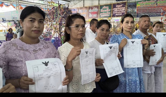 นครนายก – นักท่องเที่ยวสายมู นำโฉนดที่ดิน วัตถุมงคล เข้าพิธีสวดมหาพุทธาภิเษกองค์หลวงพ่อเสาร์ 5 วัดธรรมปัญญา มีความเชื่อว่าจะซื้อง่ายขายคล่อง
