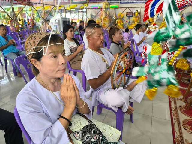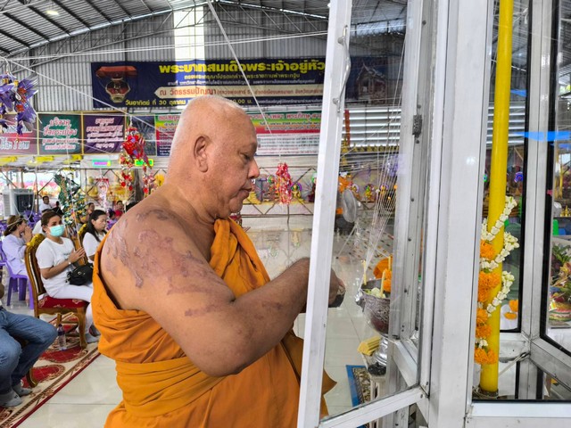 นครนายก – นักท่องเที่ยวสายมู นำโฉนดที่ดิน วัตถุมงคล เข้าพิธีสวดมหาพุทธาภิเษกองค์หลวงพ่อเสาร์ 5 วัดธรรมปัญญา มีความเชื่อว่าจะซื้อง่ายขายคล่อง