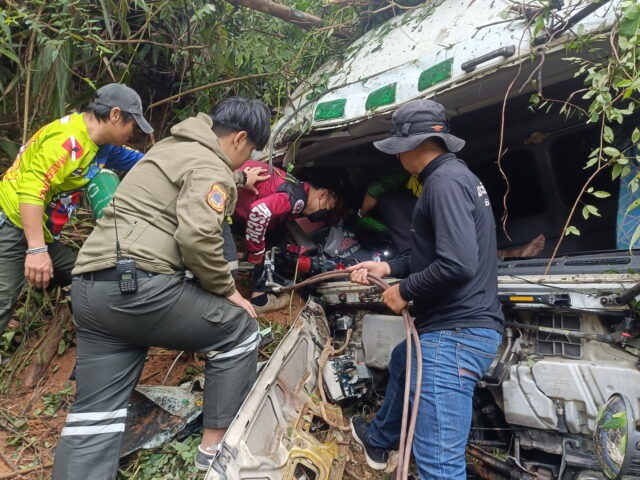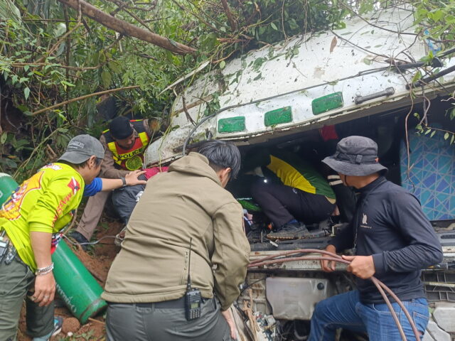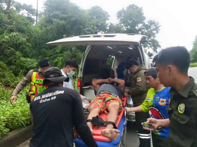 แม่ฮ่องสอน-ระทึก สิบล้อลงเขา ลมเบรกหมด อาศัยประสบการณ์หักแนบริมทางหยุดรถ ได้รับบาดเจ็บ