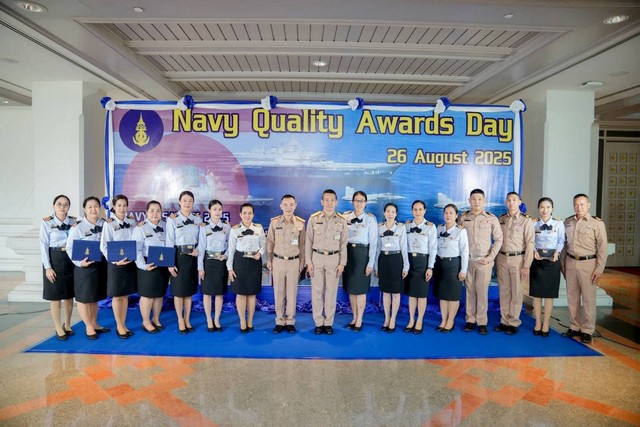 วันที่ 26 สิงหาคม 2568 พล.ร.ต.พัฒนชัย เฉลิมวรรณ์ ผู้อำนวยการ รพ.สมเด็จพระนางเจ้าสิริกิติ์ กรมแพทย์ทหารเรือ และ น.อ.หญิง เพ็ญนภา ไสยสมบัติ หัวหน้าสำนักงานวิจัยและการจัดการความรู้ รพ.ฯ นำบุคลากร รพ.ฯ เข้ารับรางวัลในงาน “วันรางวัลคุณภาพกองทัพเรือ NQA Day (Navy Quality Award Day)” ประจำปี งป.68 ณ ห้องเจ้าพระยา หอประชุมกองทัพเรือ กรุงเทพฯ