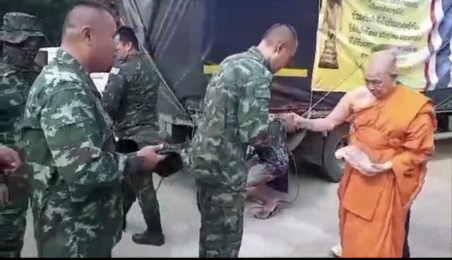 โดย เดินทางจากจังหวัดสมุทรสงคราม ไปมอบสิ่งของที่ จ.สุรินทร์.วัดเพชรสมุทรวรวิหาร ร่วมกับ มูลนิธิหลวงพ่อบ้านแหลม(ในพระสังฆราชูปถัมภ์) พระสมุทรวชิรโสภณวิ. อาจารย์อิฐพระเกจิชื่อดังเจ้าอาวาสวัดจุฬามณี นำท้าวเวสสุวรรณไปมอบให้กับทหารด้วยในครั้งนี้ และชาวสมุทรสงคราม.นำสิ่งของไปช่วยเหลือผู้ที่ได้รับผลกระทบ ชายแดน ไทย-กัมพูชา พระราชสมุทรวชิรโสภณ ที่ปรึกษาเจ้าคณะภาค15 เจ้าอาวาสวัดเพชรสมุทรวรวิหาร พร้อมด้วยคณะสงฆ์ และชาวสมุทรสงคราม เข้าพบ พลตรี ณัฎฐ์ ศรีอินทร์ รองแม่ทัพภาคที่2 มารับมอบแทน เพื่อมอบสิ่งของที่จำเป็นแก่กำลังพลของกองทัพภาคที่2 ค่ายสุรนารี และยังได้มอบวัตถุมงคล เสื้อยันต์ ท้าวเวสสุวรรณ วัดจุฬามณี จากจังหวัดสมุทรสงคราม เพื่อเป็นขวัญกำลังใจแก่ทหาร หาญ อีก ต่อไป