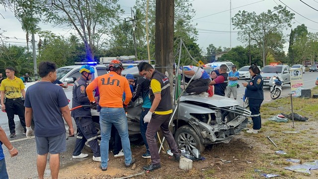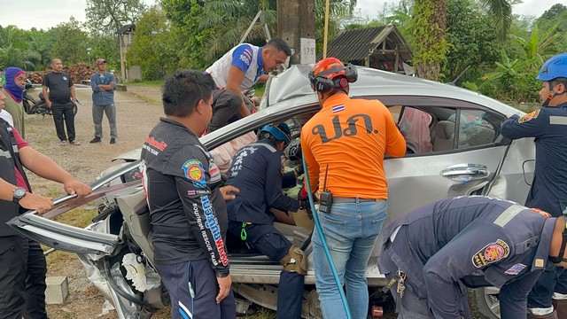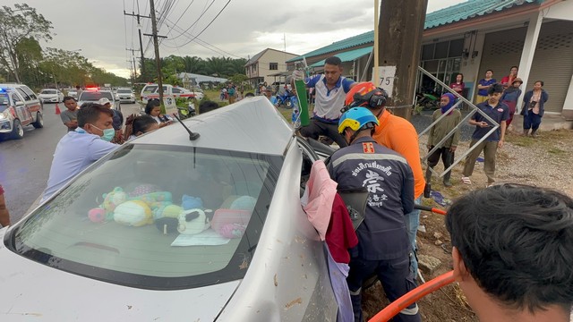 พัทลุง-ครูสาวขับรถเก๋งเสียหลักชนเสาไฟฟ้า ภายใน อาการสาหัส จนท.เร่งช่วยและเสียชีวิตในเวลาต่อมา