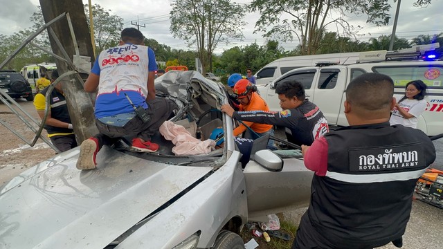 พัทลุง-ครูสาวขับรถเก๋งเสียหลักชนเสาไฟฟ้า ภายใน อาการสาหัส จนท.เร่งช่วยและเสียชีวิตในเวลาต่อมา