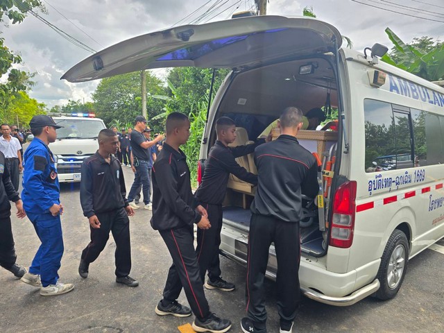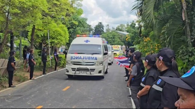วันที่ 24 ส.ค.68 วันนี้ ร่างของพลทหาร พิทยุตม์ หรือน้อย โสดา อายุ 20 ปี ชาว อ.นางรอง จ.บุรีรัมย์ ทหารสังกัด ร.23 พัน 4 ประจำการอยู่ที่ปราสาทตาเมือนธม ต.ตาเมียง อ.พนมดงรัก จ.สุรินทร์ ที่เสียชีวิตด้วยโรคประจำตัวถูกส่งกลับบ้านเกิดแล้ว ท่ามกลางชาวบ้าน อสม.ยืนเข้าแถวรอรับร่างโบกธงไทยตลอดเส้นทางบนถนนในหมู่บ้าน