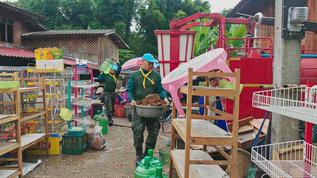 การปฏิบัติครั้งนี้เป็นความร่วมมือระหว่างกองทัพ ผู้นำชุมชน อาสาสมัครรักษาดินแดน (อส.) อำเภอแม่เมาะ เจ้าหน้าที่องค์การบริหารส่วนตำบลบ้านนาสัก และประชาชนในพื้นที่ โดยได้ช่วยกันยกสิ่งของขึ้นที่สูง รวมถึงล้างและกวาดทำความสะอาดบ้านเรือนที่ได้รับผลกระทบกว่า 10 หลังคาเรือน