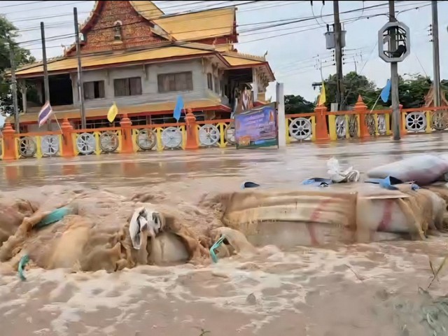 โดยเมื่อเวลา 13.30 น.ที่ผ่านมา นายนพฤทธิ์ ศิริโกศล ผู้ว่าราชการจังหวัดสุโขทัย เดินทางลงพื้นที่บริเวณพื้นที่วัดปากแคว อ.เมืองสุโขทัย เร่งเข้าตรวจสอบสถานะการณ์ มวลน้ำจากแม่น้ำยม ทะลักล้นคันตลิ่งและผุดใต้ถนนเลียบแม่น้ำยมหลังวัดปากแควในรอบที่ 3 ซึ่งมวลน้ำเข้าท่วมพื้นที่เต็มวัดปากแควพร้อมกับกระจาย เป็นวงกว้างเข้าสู่ทั้ง หมู่ที่ 2 และหมู่ที่ 4 ของตำบลปากแคว โดยชาวบ้านบอกเล่าว่า น้ำที่ทะลักเข้าท่วมในครั้งนี้ รุนแรงและมีปริมาณมาก กว่า 2 ครั้งที่ผ่านมา
