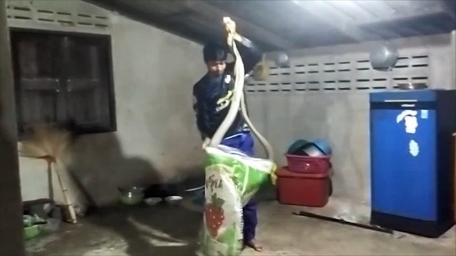 เมื่อนายทวีศักดิ์ ไปถึงบ้านเลขที่ดังกล่าว ก็รีบเข้าตรวจสอบที่บริเวณหลังตู้เย็น ก็พบงูจงอางตัวใหญ่ ขดตัวอยู่ จึงใช้อุปกรณ์ในการจับงูเข้าทำการจับทันที โดยใช้เวลาไม่นานนักก็สามารถจับงูจงอางไว้ได้ นำมาวัดได้ความยาว 3 เมตร จึงจับใส่กระสอบ เตรียมนำไปปล่อยคืนสู่ป่าธรรมชาติที่อยู่ห่างไกลบ้านเรือนผู้คนต่อไป