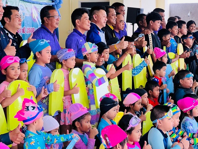 นายสุรัตน์ จรณโยธิน ท่องเที่ยวและกีฬาจังหวัดพัทลุง ให้เกียรติเป็นประธานในพิธีเปิดโครงการเด็กไทยว่ายน้ำได้ ประจำปี 2568