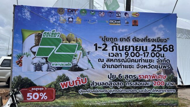 นายเธียรชัย ชูกิตติวิบูลย์ ผู้ว่าราชการจังหวัดชุมพร เปิดเผยว่า กรมการค้าภายใน (DIT) กระทรวงพาณิชย์ ได้จัดงาน “ธงเขียวราคาประหยัด ปุ๋ยถูก ยาดี ต้องที่ธงเขียว” ขึ้นที่ สหกรณ์นิคมท่าแซะ จำกัด จังหวัดชุมพร ระหว่างวันที่ 1-2 กันยายน 2568 เพื่อช่วยเหลือพี่น้องเกษตรกรให้เข้าถึงปัจจัยการผลิตที่จำเป็นในราคาถูก