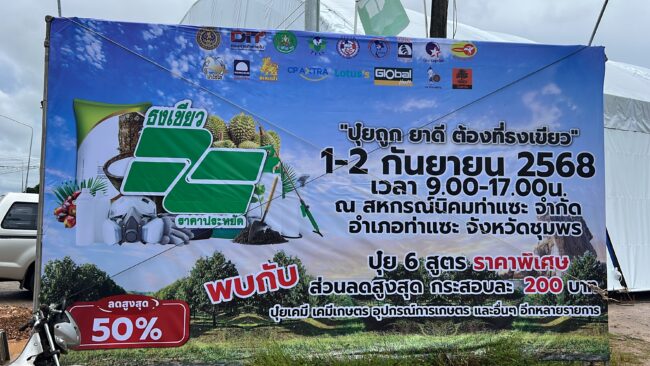 นายเธียรชัย ชูกิตติวิบูลย์ ผู้ว่าราชการจังหวัดชุมพร เปิดเผยว่า กรมการค้าภายใน (DIT) กระทรวงพาณิชย์ ได้จัดงาน “ธงเขียวราคาประหยัด ปุ๋ยถูก ยาดี ต้องที่ธงเขียว” ขึ้นที่ สหกรณ์นิคมท่าแซะ จำกัด จังหวัดชุมพร ระหว่างวันที่ 1-2 กันยายน 2568 เพื่อช่วยเหลือพี่น้องเกษตรกรให้เข้าถึงปัจจัยการผลิตที่จำเป็นในราคาถูก