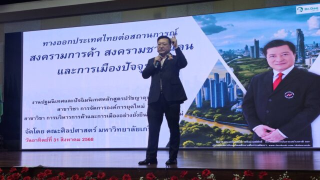 “ทางออกประเทศไทยในยุคสงครามการค้า สงครามชายแดน และการเมืองไทย ที่มีผลต่อการจัดระเบียบโลกใหม่” พร้อมทั้งการปฐมนิเทศนักศึกษาใหม่ ในระดับปริญญาเอก
