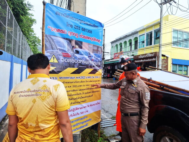 แม่ฮองสอน-สภ.แม่สะเรียง รับมอบป้ายจาก ทต.เมืองยวมใต้ จัดระเบียงการจราจรเส้นทางถนนเวียงใหม่