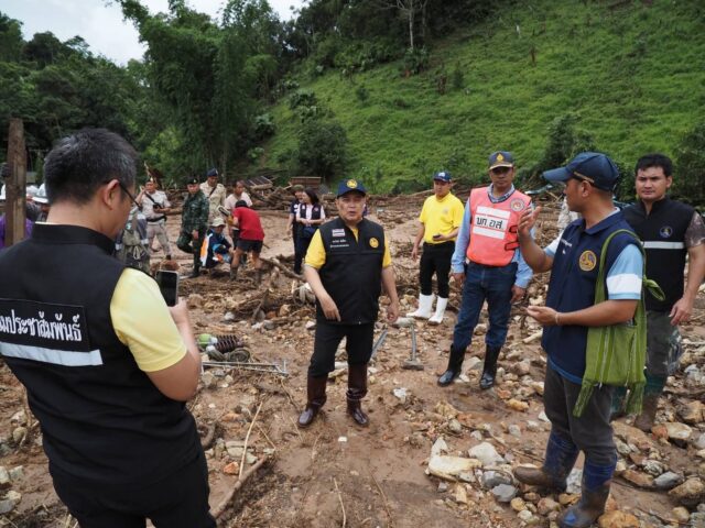 จากนั้นผู้ว่าราชการจังหวัดแม่ฮ่องสอน ได้ตรวจดูความเสียหายของพื้นที่ ซึ่งบ้านห้วยหมาก-ลาง ประสบอุทกภัย น้ำป่าไหลหลาก และดินโคลนถล่ม บ้านเรือนถูกดินโคลนทับถมจำนวนหลายหลัง มีผู้เสียชีวิต 1 ราย และได้รับบาดเจ็บ 1 ราย ชาวบ้านส่วนใหญ่ยังไม่สามารถเข้าพักในที่อยู่อาศัย เนื่องจากมีความเสี่ยงดินโคลนถล่มซ้ำ และเส้นทางสัญจรหลักถูกดินปิดทับยังไม่สามารถสัญจรผ่านได้ ต้องใช้เส้นทางอ้อมเข้าทางอำเภอขุนยวม จากนั้นได้เดินทางไปยังโรงเรียนเสรีวิทยา ตำบลห้วยโป่ง อำเภอเมืองแม่ฮ่องสอน เพื่อมอบชุดธารน้ำใจช่วยผู้ประสบภัย บ้านพะนอคี จำนวน 20 ชุด