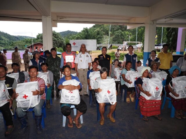 ที่บ้านห้วยหมาก-ลาง ตำบลห้วยโป่ง อำเภอเมืองแม่ฮ่องสอน นายเอกวิทย์ มีเพียร ผู้ว่าราชการจังหวัดแม่ฮ่องสอน พร้อมด้วยนายอำเภอเมืองแม่ฮ่องสอน หัวหน้าส่วนราชการ และคณะกรรมการสมาชิกเหล่ากาชาดจังหวัดแม่ฮ่องสอน ลงพื้นที่มอบชุดธารน้ำใจช่วยผู้ประสบภัย จากสำนักงานบรรเทาทุกข์และประชานามัยพิทักษ์ สภากาชาดไทย จำนวน 282 ชุด ในพื้นที่ตำบลห้วยโป่ง หมู่ที่ 4 บ้านห้วยหมาก-ลาง จำนวน 134 ชุด หมู่ที่ 14 บ้านใหม่ห้วยหวาย จำนวน 128 ชุด และหมู่ที่ 9 บ้านพะนอคี จำนวน 20 ชุด และมอบเงินช่วยเหลือให้แก่ครอบครัวผู้เสียชีวิต จำนวน 10,000 บาท บ้านห้วยหมาก-ลาง พร้อมทั้งได้พบปะพูดคุยกับผู้ประสบภัย