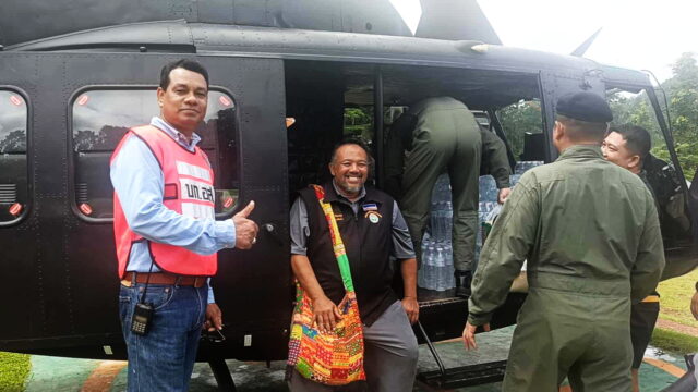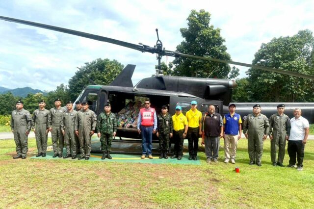 แม่ฮ่องสอน-ฮ.สิงหนาท 2 ลำ บินลำเลียงถุงยังชีพ โดยนายอำเภอเมืองิ และ สะพานบุญครูหนึ่ง เข้าช่วยเหลือผู้ประสบภัย 5 หมู่บ้านที่ถูกตัดขาดเส้นทาง จากฤทธิ์พายุคาจิกิ