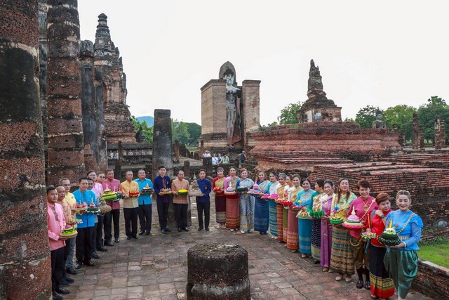 สุโขทัย-ผู้ว่าราชการจังหวัดสุโขทัย นำทีมคณะผู้บริหารและส่วนราชการในจังหวัดสุโขทัย ร่วมบันทึกภาพประชาสัมพันธ์การจัดงานประเพณีลอยกระทง เผาเทียน เล่นไฟ จังหวัดสุโขทัย ประจำปี 2568