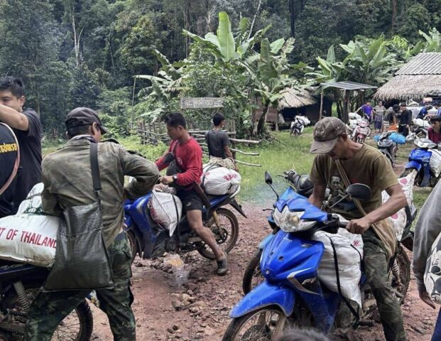 แม่ฮ่องสอน-ฤดูแห่งความยากลำบาก ขนอาหารกลางวันไม่ง่าย แต่ไม่ยาก ครูและชาวบ้าน ช่วยกัน แว้นมอไซค์ 14 คัน ขนข้ามน้ำข้ามดอย ทอยอาหารกลางวันให้เด็กนักเรียนโรงเรียนจอสิเดอเหนือ