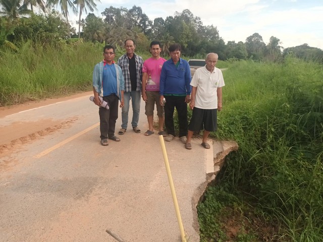 ที่ถนนสายคอกคี – กุดทิง เชื่อมต่อระหว่างบ้านคอกคี ต.บัวใหญ่ และบ้านเหล่าใหญ่ ต.บ้านขาม อ.น้ำพอง จ.ขอนแก่น สิ้นสุดที่บ้านกุดทิง อ.ซำสูง ดร.พงศกรณ์ เสาร์ทน ประธานคณะทำงานนายกองค์การบริหารส่วนจังหวัดขอนแก่น ลงพื้นที่เพื่อสำรวจและตรวจทางสาธารณะเชื่อมระหว่างหมู่บ้านถูกผลกระทบจากพายุหนองฟ้า ได้รับความเสียหาย มวลน้ำกัดเซาะทำให้ถนนเสียหายเป็นช่วง ๆ โดยมี นายจุลยุทธ เบญจมาศ ผู้ใหญ่บ้านหมู่ 8 นายบุญมี พลมาตย์ ผู้ใหญ่บ้านหมู่ 13 และกรรมการหมู่บ้าน และชาวบ้านบ้านเหล่าใหญ่ ต.บ้านขาม ร่วมกันสำรวจและทำการซ่อมแซมเพื่อแก้ไขปัญหาเฉพาะหน้า