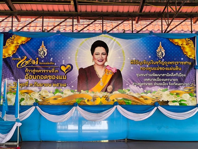 เมื่อเวลา 11 .20 น.ของวันที่ 3 กันยายน 2568 เทศบาลเมืองนครนายก จัดขบวนอัญเชิญเงินขวัญถุงพระราชทานกองทุนแม่ของแผ่นดิน ขบวนแห่จากศาลากลางจังหวัดนครนายก มุ่งหน้าสวนหลวงเฉลิมพระเกียรติ ร. 9 โดยมีนายยงยศ อิสระเสนารักษ์ นายกเทศมนตรีเทศบาลเมืองนครนายก พร้อมคณะผู้บริหาร สมาชิกสภาเทศบาล หัวหน้าส่วนราชการ คณะกรรมการชุมชนต้นกล้า คณะกรรมการชุมชน ประชาชนในชุมชน นักเรียนในสังกัดเทศบาลเมืองนครนายก