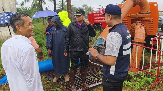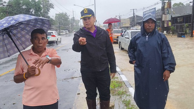 เมื่อวันที่ 4 ก.ย. 68 ผู้สื่อข่าวรานงานว่า นานพิชญพัทธ์ เรืองชาตรี นายอำเภอตะกั่วป่า นายปณิทาน แก้วหมุน ปลัดฝ่ายความมั่นคงอำเภอตะกั่วป่า พร้อมชุด อส ที่7. อ.ตะกั่วป่า นายสมญา นพฤทธิ์ รองนายกเทศมนตรีตำบลคึกคัก จากที่เกิดฝนตกอย่างต่อเนื่อง ทำให้น้ำจากเขาวง ต.คึกคัก อ.ตะกั่วป่า จ.พังงา ไหลเข้าท่วมทางหลวงหมายเลข 4 ถนนเพชรเกษม ตะกั่วป่า-เขาหลัก มีน้ำท่วมขังความสูงประมาณ 30 – 40 เซนติเมตร