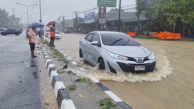 พังงา-ท่วมอีกแล้ว!!น้ำท่วมอ่วมฝนถล่ม ท่วมถนนสายแหล่งท่องเที่ยวชื่อดัง ตะกั่วป่า-เขาหลัก