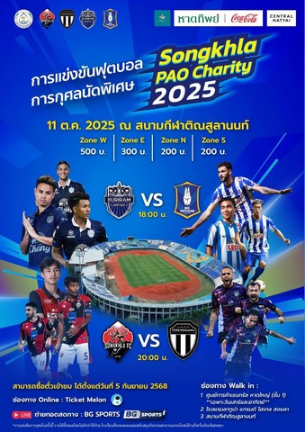 สงขลา-ระอุ! “Songkhla PAO Charity 2025” ดึงยักษ์ไทยลีกฟัดเดือด พร้อมศึกข้ามพรมแดน ไทย–มาเลย์