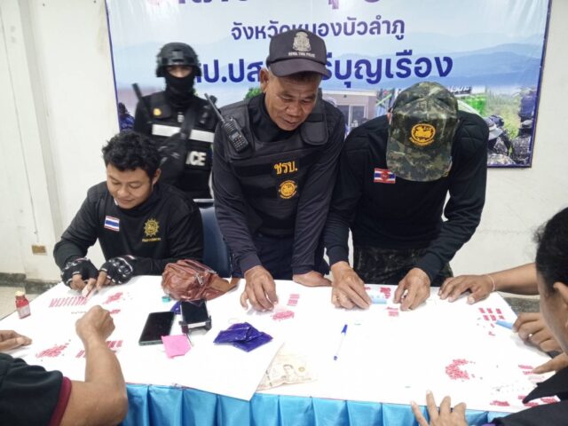 เมื่อวันที่ 8 ก.ย.2568 ผู้สื่อข่าวรายงานว่า นายเพทาย จรกระโทก นายอำเภอศรีบุญรือง ได้สั่งการให้ฝ่ายปกครองและผู้นำชุมชนลงพื้นที่หาข่าว จับกุมผู้ที่มีพฤติกรรมยุ่งเกี่ยวกับยาเสพติดในอำเภอศรีบุญเรือง ต่อมาเกียรติศักดิ์ จันทร์เขียว กำนันโนนม่วง พร้อมผู้นำชุมชนตำบลโนนม่วง ได้ร่วมจับกุมนายเอ อายุ 37 ปี(นามสมมุติ) ราษฎร หมู่ 8 ต.โนนม่วง อ.ศรีบุญเรือง จ.หนองบัวลำภู พร้อมของกลาง ยาบ้า 1,116 เม็ด ,เงินสด 8,020 บาท ,โทรศัพท์มือถือ 3 เครื่อง พร้อมผลตรวจปัสสาวะเป็นสีม่วง สมารถจับกุมได้ที่ ถนนทางการเกษตรบ้านมอเหนือ มาบ้านฝายหิน